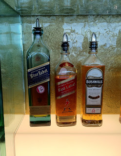 With One World Emerald status (thanks to our United 1k status being matched to American Executive Platinum) we were able to use the BA Galleries First lounge in Terminal 5 which was one of the larger and nicer airline lounges I have been in. There was a large buffet with pork belly, short ribs, pasta salads, curry, etc. plus table service for other hot appetizers and entrees. This is also the only place we have seen serve-yourself Johnny Walker Blue Label. And there was an entire Champagne Room (with no sex in it).